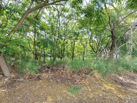 El terreno, ubicado en la parte baja y con un amplio frente de 60.75 metros por 48.76 metros de fondo y 43.97 metros de fondo.